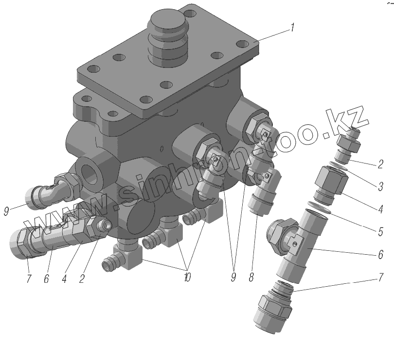 Каталог запасных частей к технике: УралАЗ УРАЛ-63704. Установка крана тормозного 3-х секционного