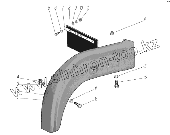 Каталог запасных частей к технике: УралАЗ УРАЛ-63704. Установка крыльев передних