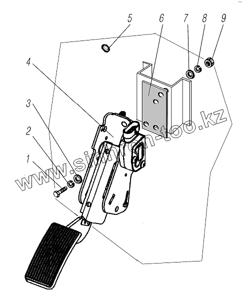Каталог запасных частей к технике: УралАЗ УРАЛ-63704. Установка педали акселератора