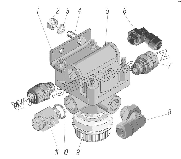 Каталог запасных частей к технике: УралАЗ УРАЛ-63704. Установка ускорительного клапана стояночного тормоза