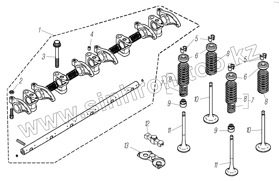 Каталог запасных частей к технике: УралАЗ УРАЛ-6370-1121. Клапаны, коромысла, ось коромысел