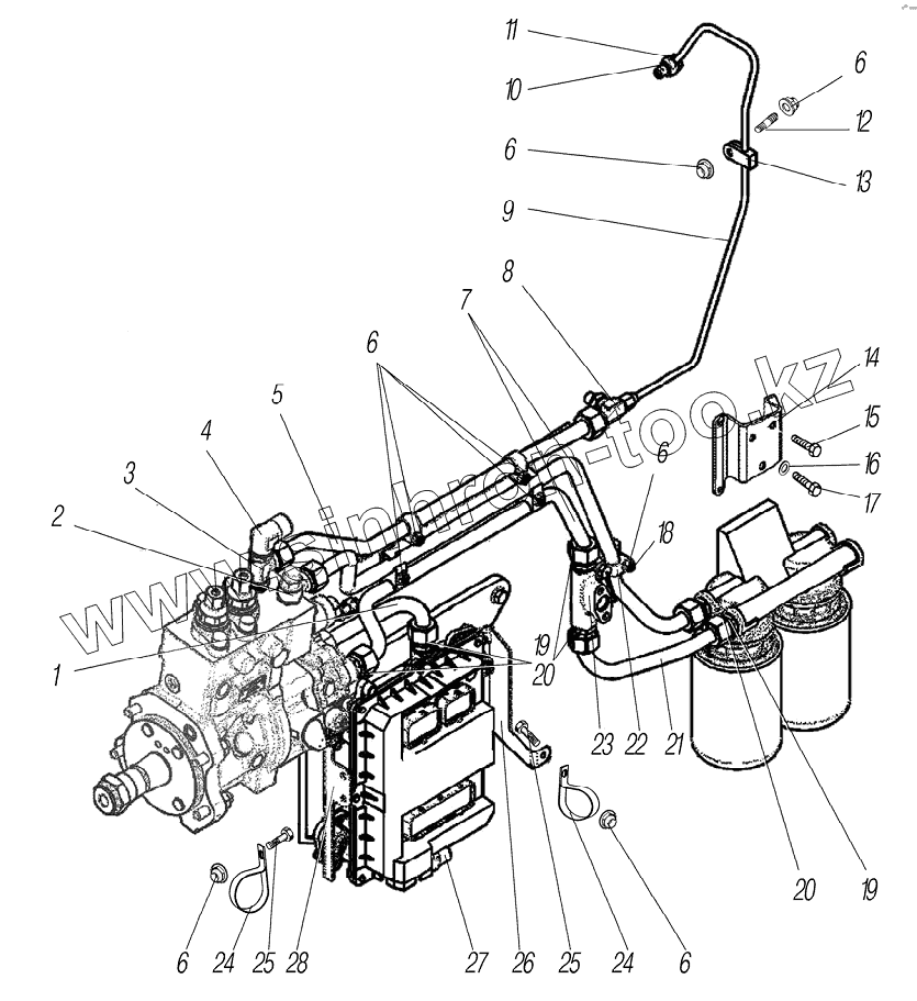 Трубки от топливного насоса к топливному фильтру в сборе