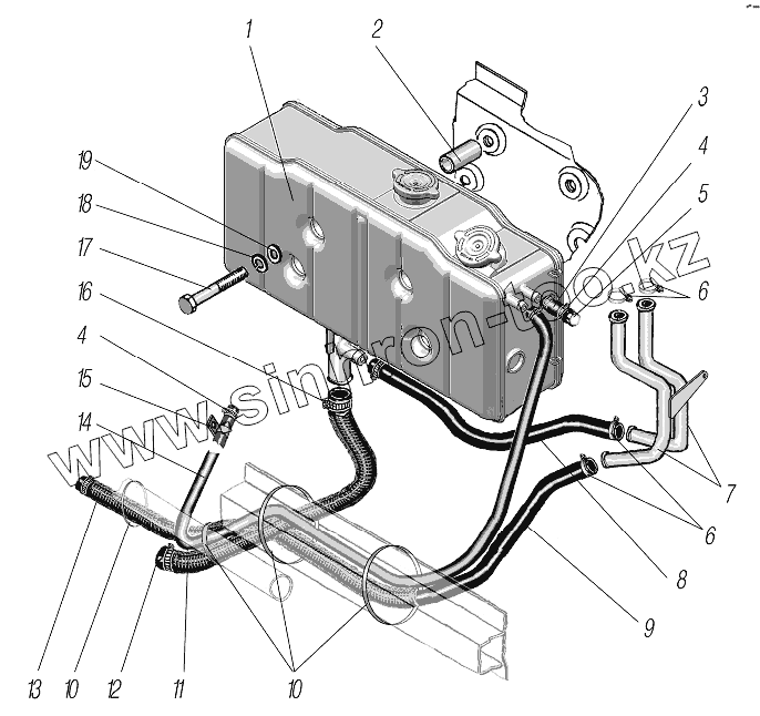 Каталог запасных частей к технике: УралАЗ УРАЛ-6370-1121. Установка расширительного бачка