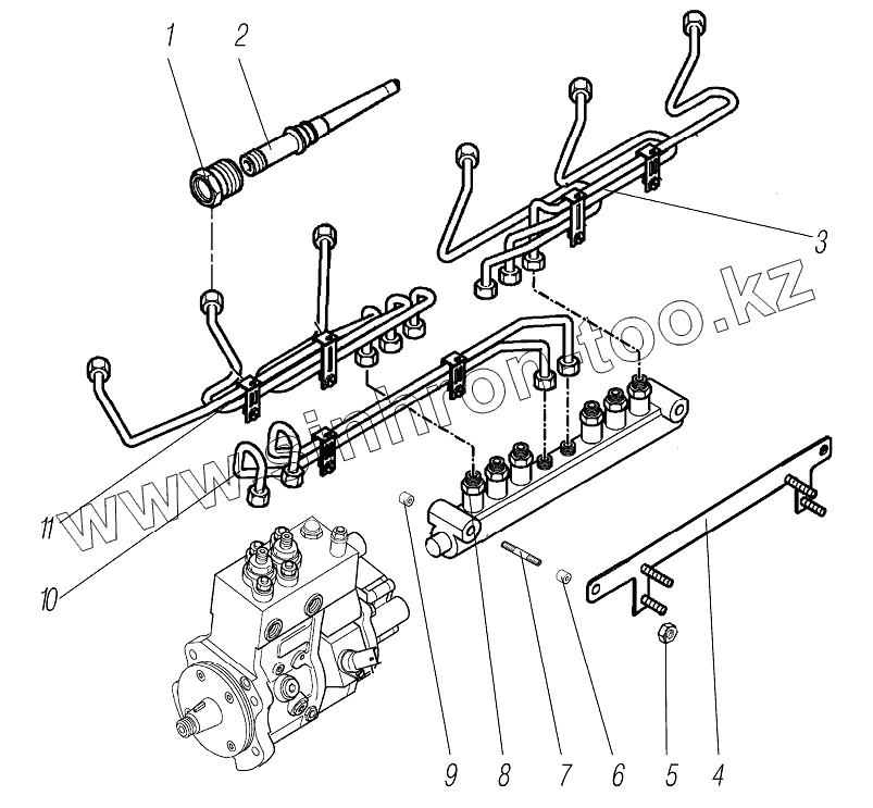 Каталог запасных частей к технике: УралАЗ УРАЛ-6370-1151. Топливные трубопроводы высокого давления
