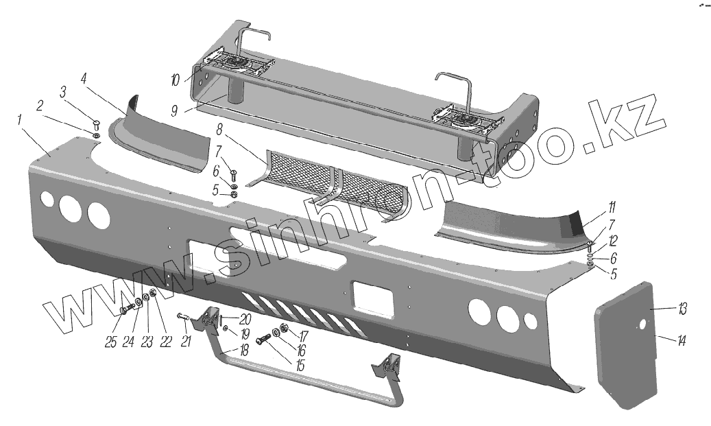 Каталог запасных частей к технике: УралАЗ УРАЛ-6370-1151. Установка переднего буфера