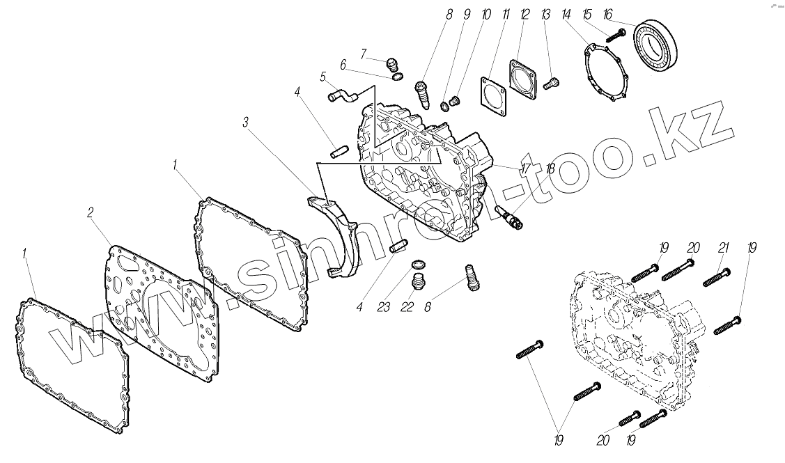 Каталог запасных частей к технике: УралАЗ УРАЛ-6370-1151. Установка задней крышки картера