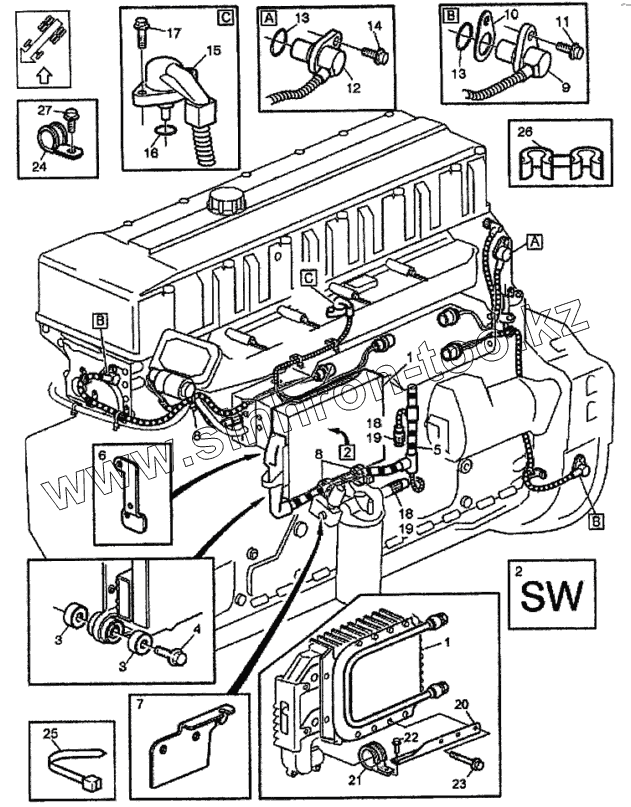 Каталог запасных частей к технике: Volvo FH12. Датчики и контрольные устройства двигателя