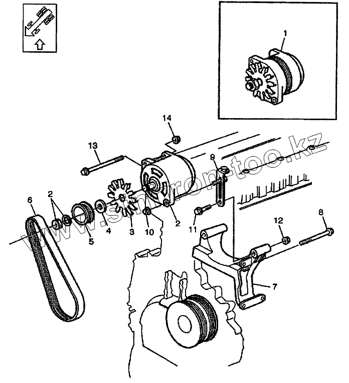 Каталог запасных частей к технике: Volvo FH12. Генератор (крепление)