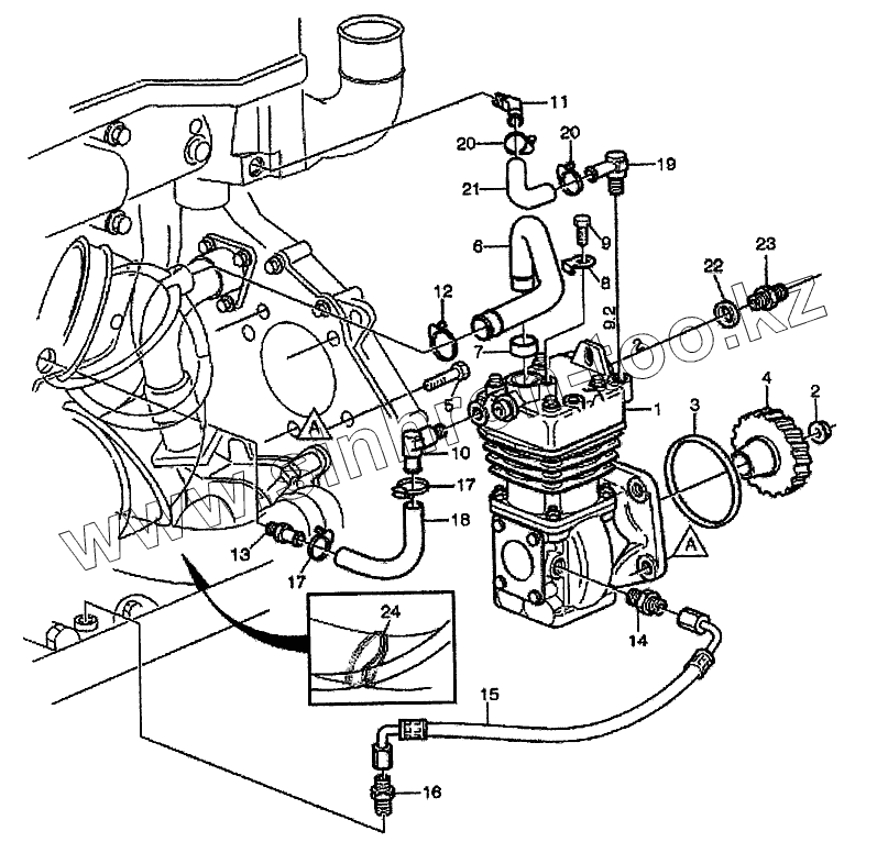 Элементы подвески кабины и трубки подключения