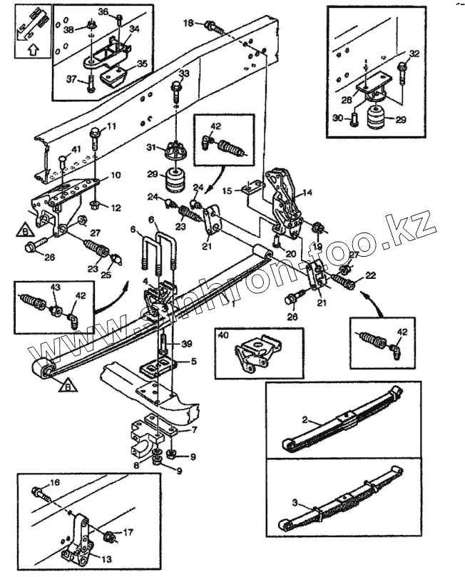 Каталог запасных частей к технике: Volvo FH12. Передние рессоры 4x2, 6x2, 6x4