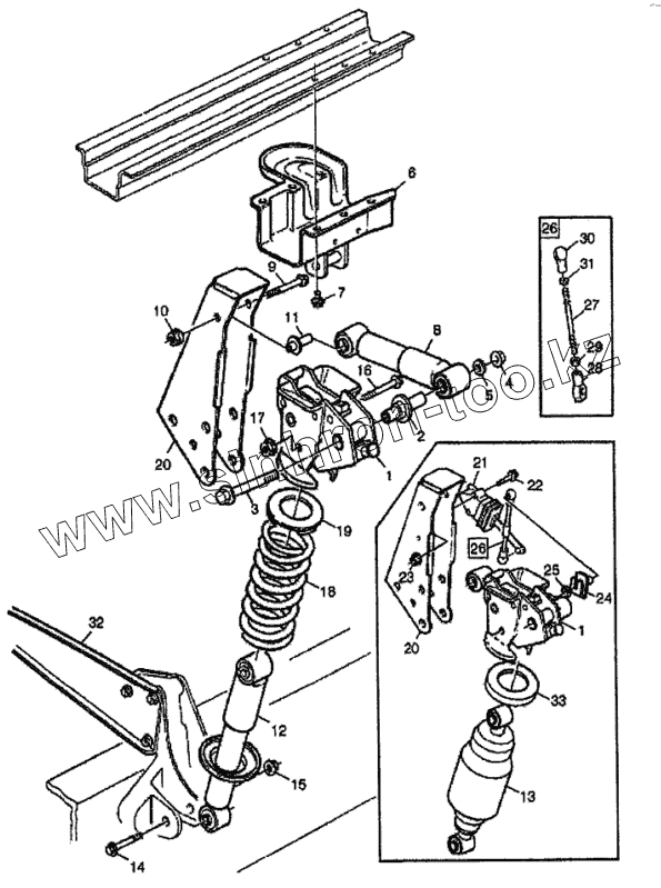 Каталог запасных частей к технике: Volvo FH12. Подвеска кабины (задняя часть)