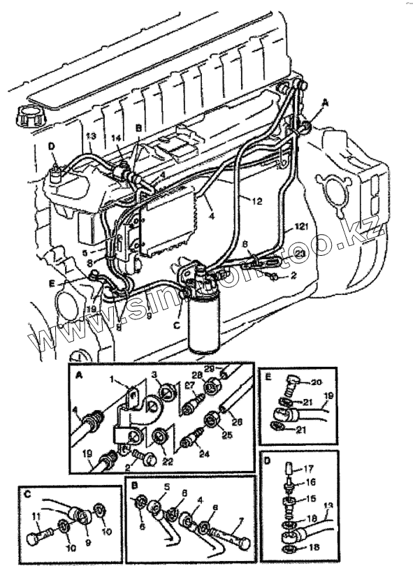 Каталог запасных частей к технике: Volvo FH12. Топливные магистрали на двигателе