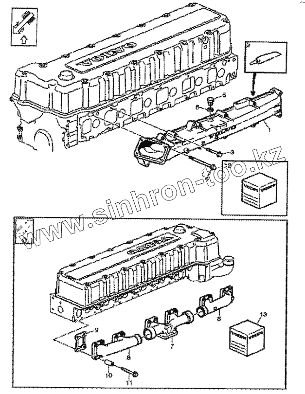 Каталог запасных частей к технике: Volvo FH12. Впускной и выпускной коллектор