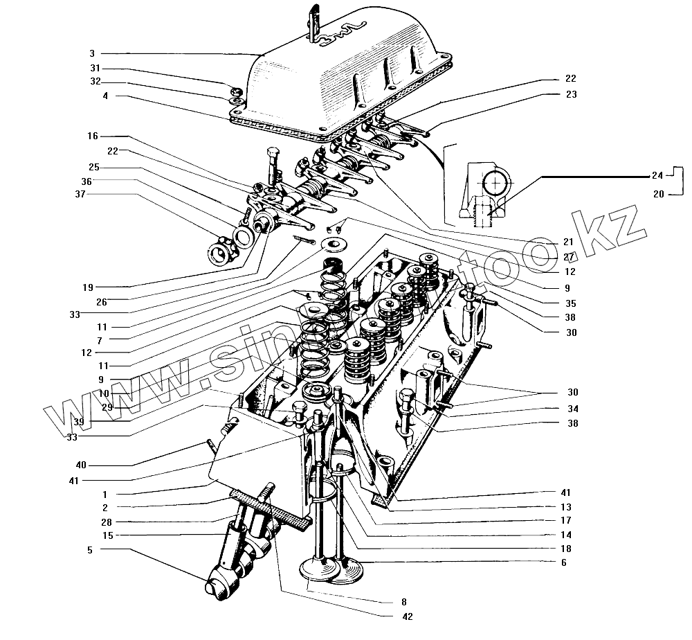 Каталог запасных частей к технике: ЗИЛ-130. Головка блока цилиндров, клапаны и толкатели