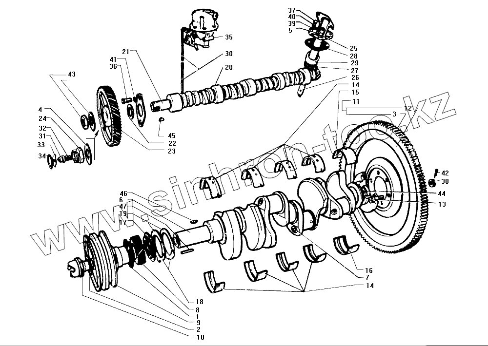 Каталог запасных частей к технике: ЗИЛ-130. Коленчатый вал, распределительный вал, маховик