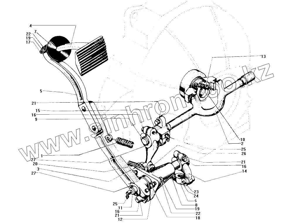 Каталог запасных частей к технике: ЗИЛ-130. Педаль и привод выключения сцепления