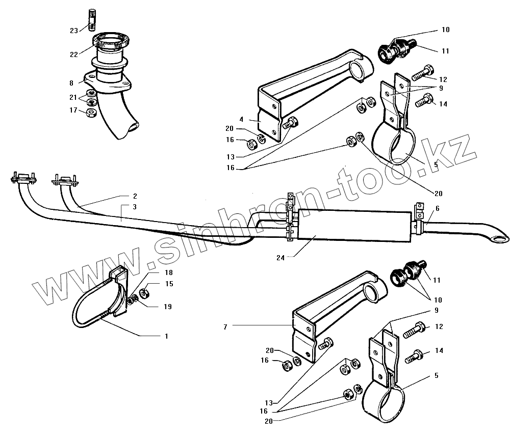 Каталог запасных частей к технике: ЗИЛ-130. Установка глушителя, впускных и выпускных труб
