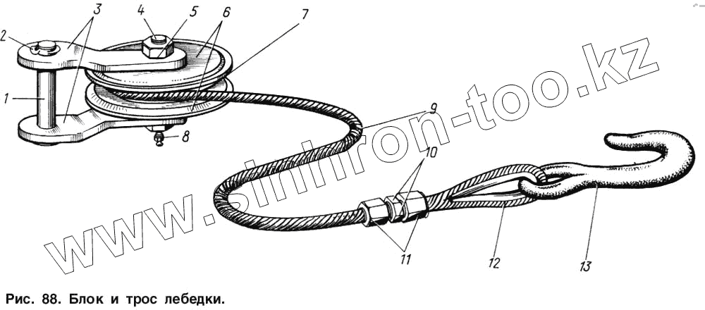 Каталог запасных частей к технике: ЗИЛ-131. Блок и трос лебедки