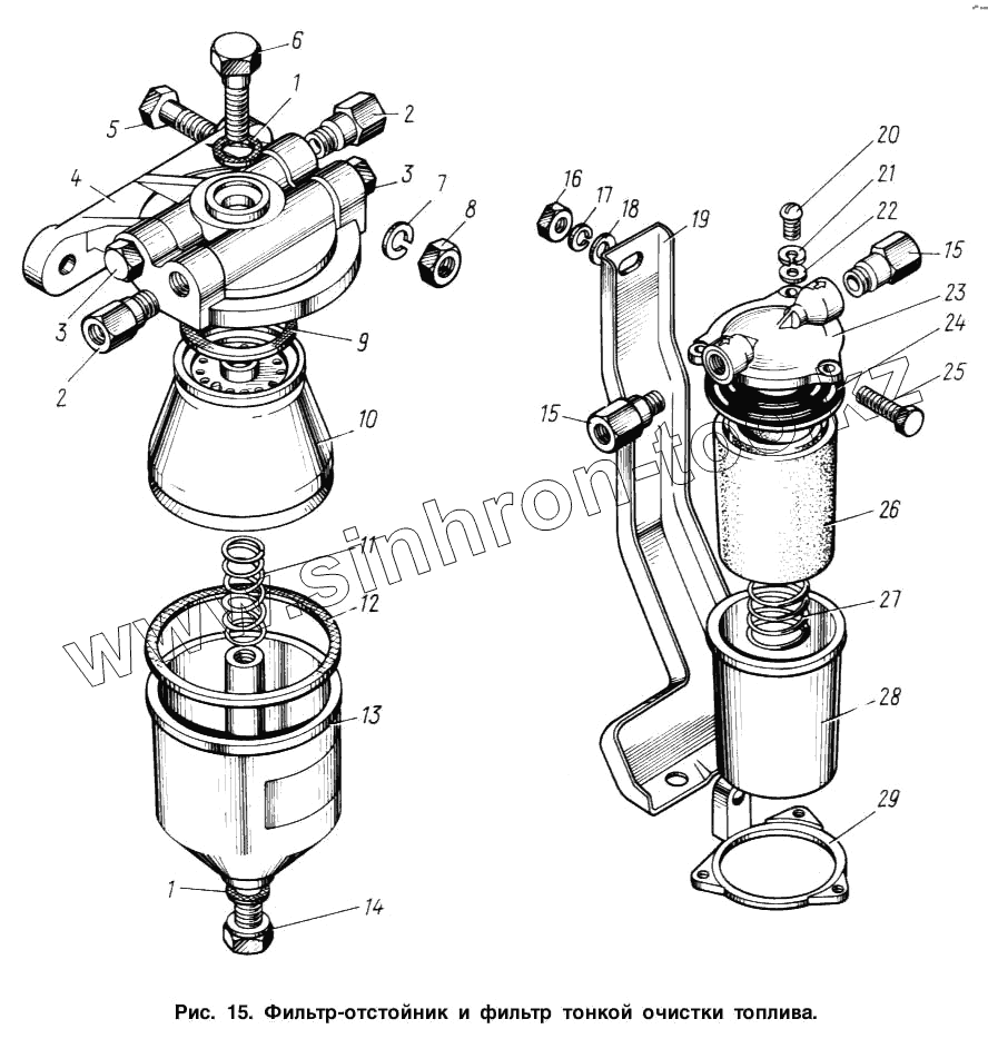 Каталог запасных частей к технике: ЗИЛ-131. Фильтр-отстойник и фильтр тонкой очистки топлива