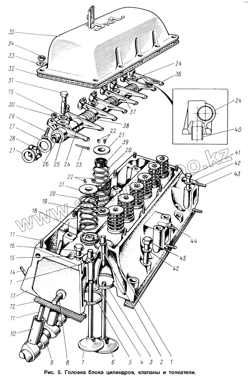 Каталог запасных частей к технике: ЗИЛ-131. Головка блока цилиндров, клапаны и толкатели