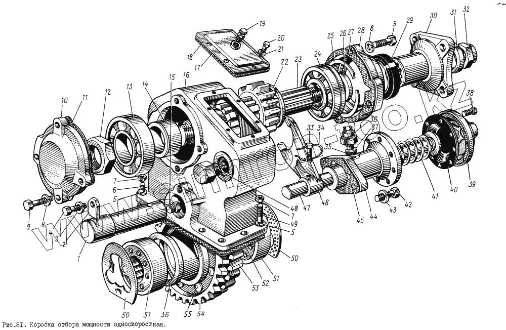 Каталог запасных частей к технике: ЗИЛ-131. Коробка отбора мощности односкоростная
