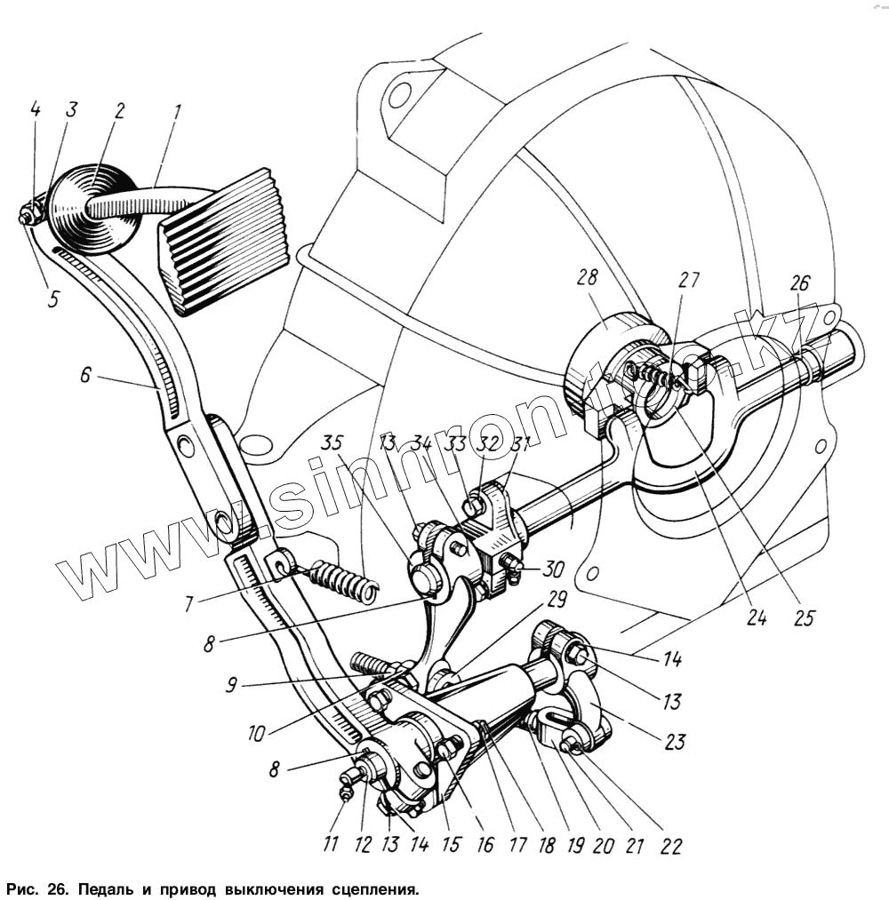 Каталог запасных частей к технике: ЗИЛ-131. Педаль и привод выключения сцепления