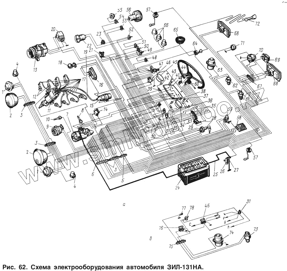 Каталог запасных частей к технике: ЗИЛ-131. Схема электрооборудования автомобиля ЗИЛ-131НА