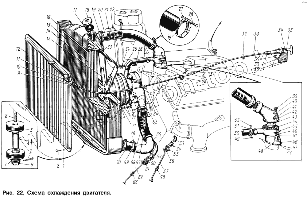 Каталог запасных частей к технике: ЗИЛ-131. Схема охлаждения двигателя
