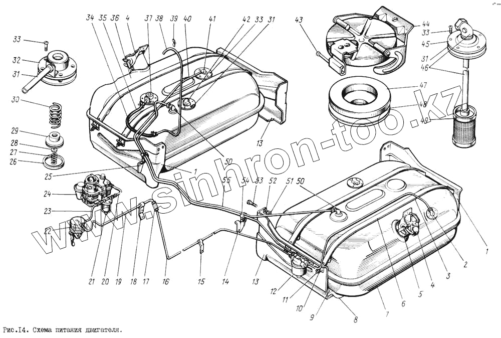 Каталог запасных частей к технике: ЗИЛ-131. Схема питания двигателя