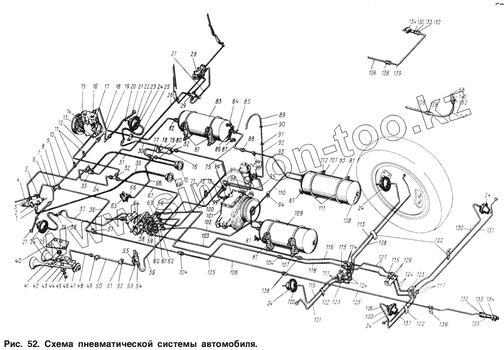 Каталог запасных частей к технике: ЗИЛ-131. Схема пневматической системы автомобиля