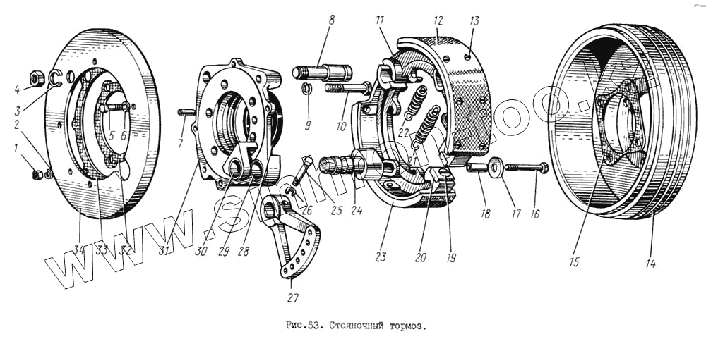 Каталог запасных частей к технике: ЗИЛ-131. Стояночный тормоз