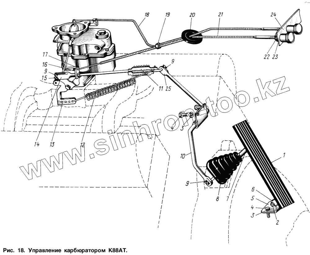 Каталог запасных частей к технике: ЗИЛ-131. Управление карбюратором К88АТ