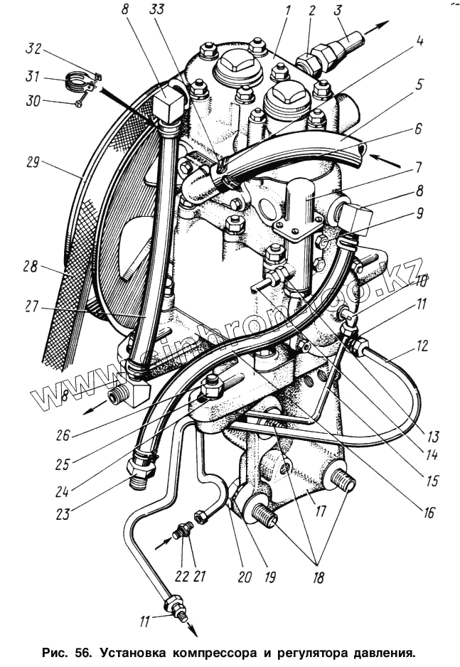 Каталог запасных частей к технике: ЗИЛ-131. Установка компрессора и регулятора давления