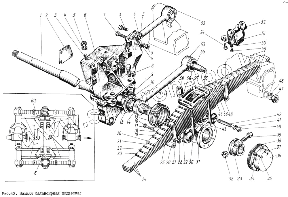 Каталог запасных частей к технике: ЗИЛ-131. Задняя балансирная подвеска