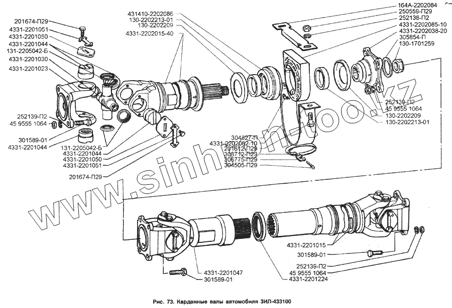 Каталог запасных частей к технике: ЗИЛ-133Д42. Карданные валы автомобиля ЗИЛ-433100