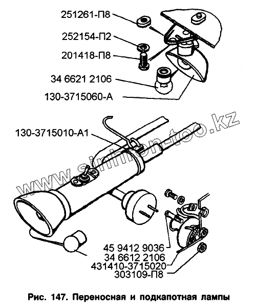 Каталог запасных частей к технике: ЗИЛ-133Д42. Переносная и подкапотная лампы