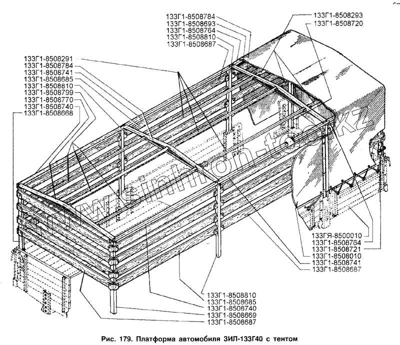 Каталог запасных частей к технике: ЗИЛ-133Д42. Платформа автомобиля ЗИЛ-133Г40 с тентом