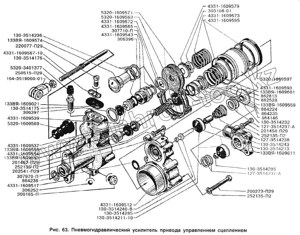 Каталог запасных частей к технике: ЗИЛ-133Д42. Пневмогидравлический усилитель привода управлением сцеплением