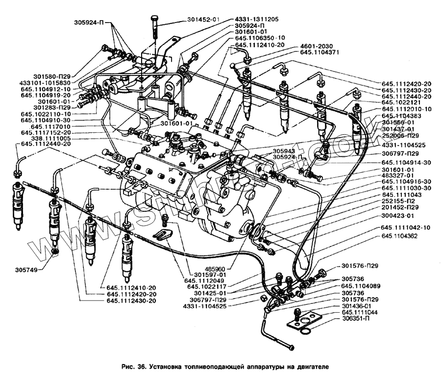 Каталог запасных частей к технике: ЗИЛ-133Д42. Установка топливоподающей аппаратуры на двигателе