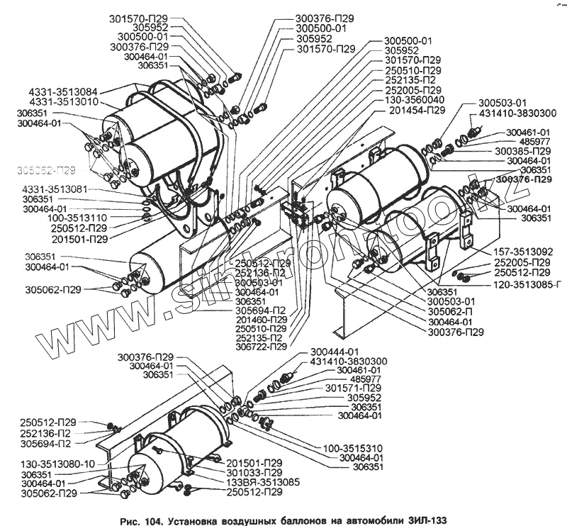 Каталог запасных частей к технике: ЗИЛ-133Д42. Установка воздушных баллонов на автомобили ЗИЛ-133