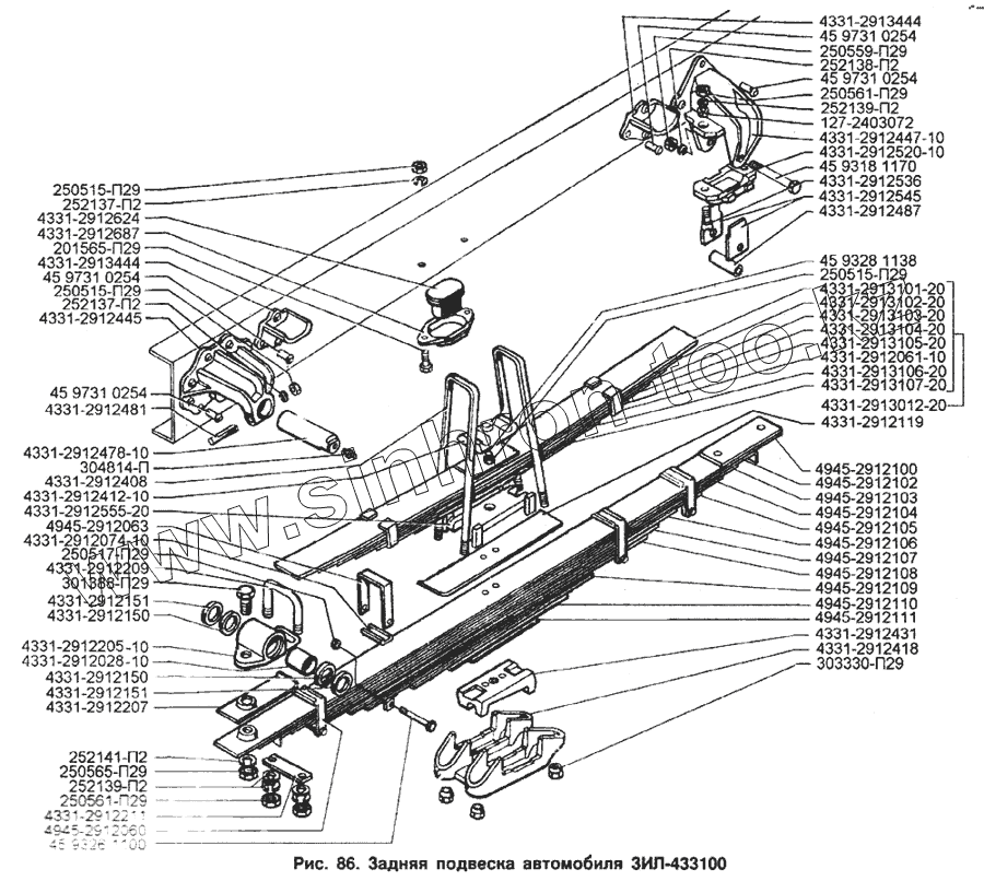 Каталог запасных частей к технике: ЗИЛ-133Г40. Задняя подвеска автомобиля ЗИЛ-433100