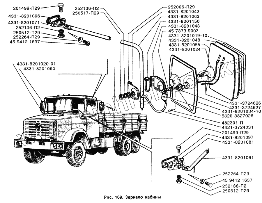 Каталог запасных частей к технике: ЗИЛ-133Г40. Зеркало кабины