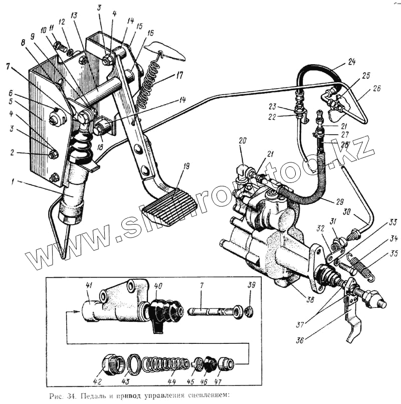 Каталог запасных частей к технике: ЗИЛ-133ГЯ. Педаль и привод управления сцеплением