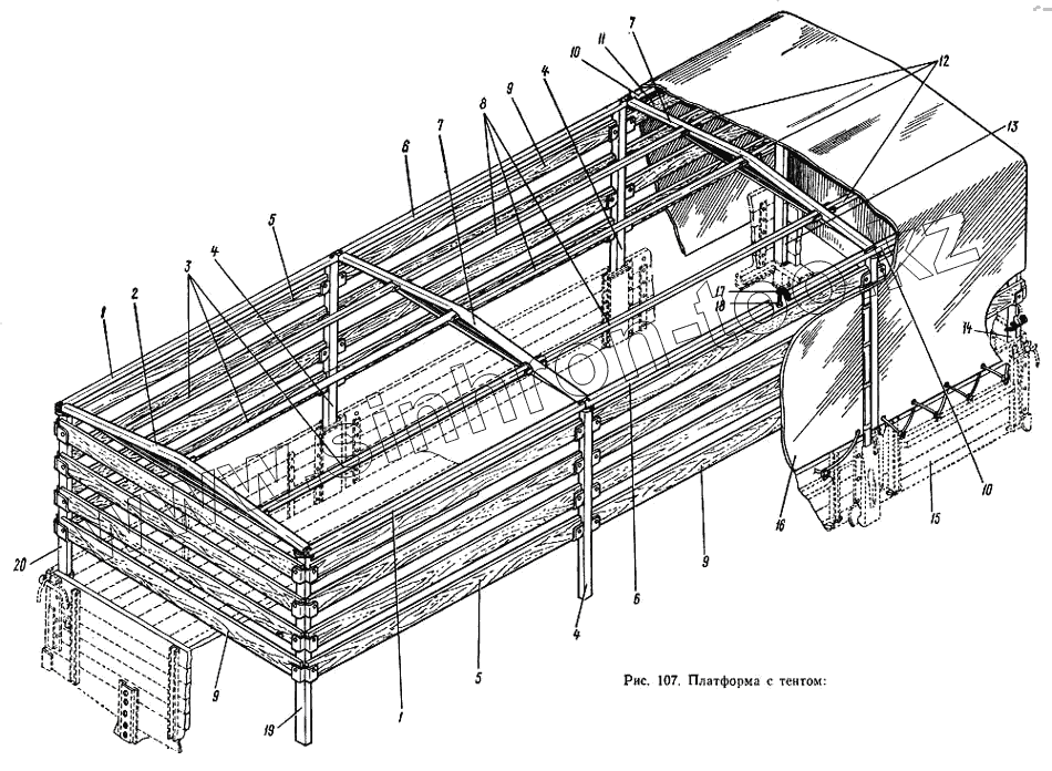 Каталог запасных частей к технике: ЗИЛ-133ГЯ. Платформа с тентом