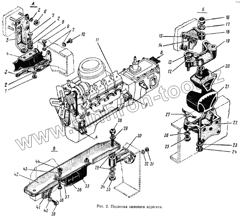 Каталог запасных частей к технике: ЗИЛ-133ГЯ. Подвеска силового агрегата