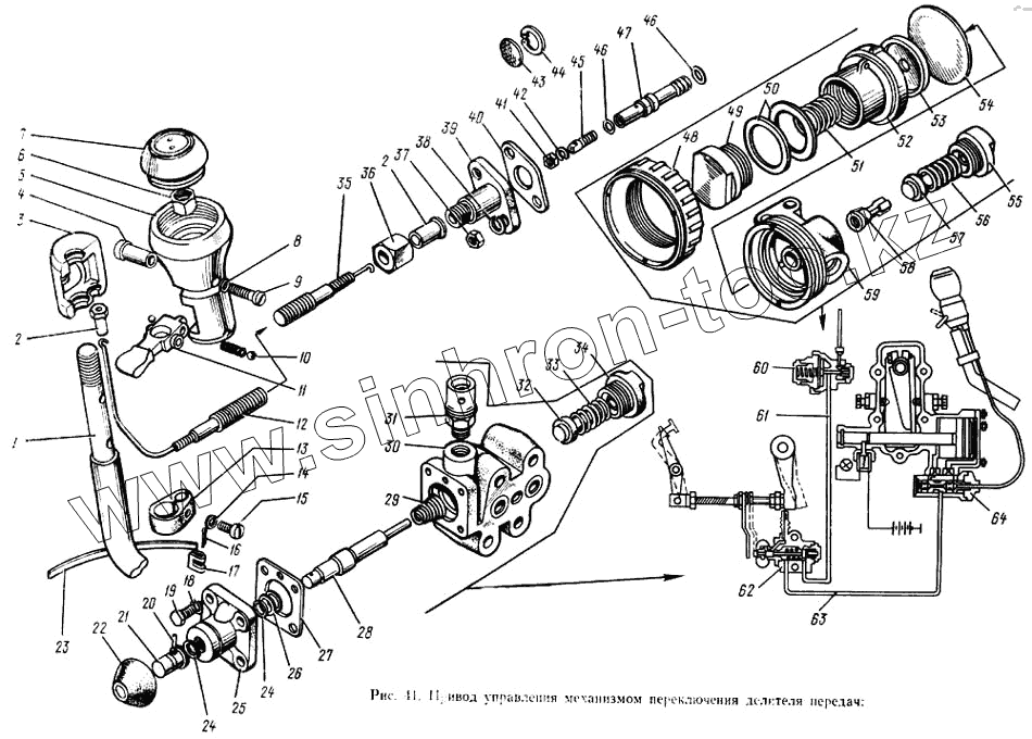 Каталог запасных частей к технике: ЗИЛ-133ГЯ. Привод управления механизмом переключения делителя передач