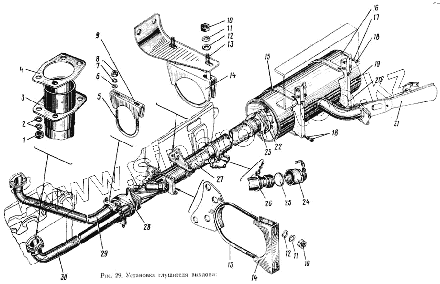 Каталог запасных частей к технике: ЗИЛ-133ГЯ. Установка глушителя выхлопа