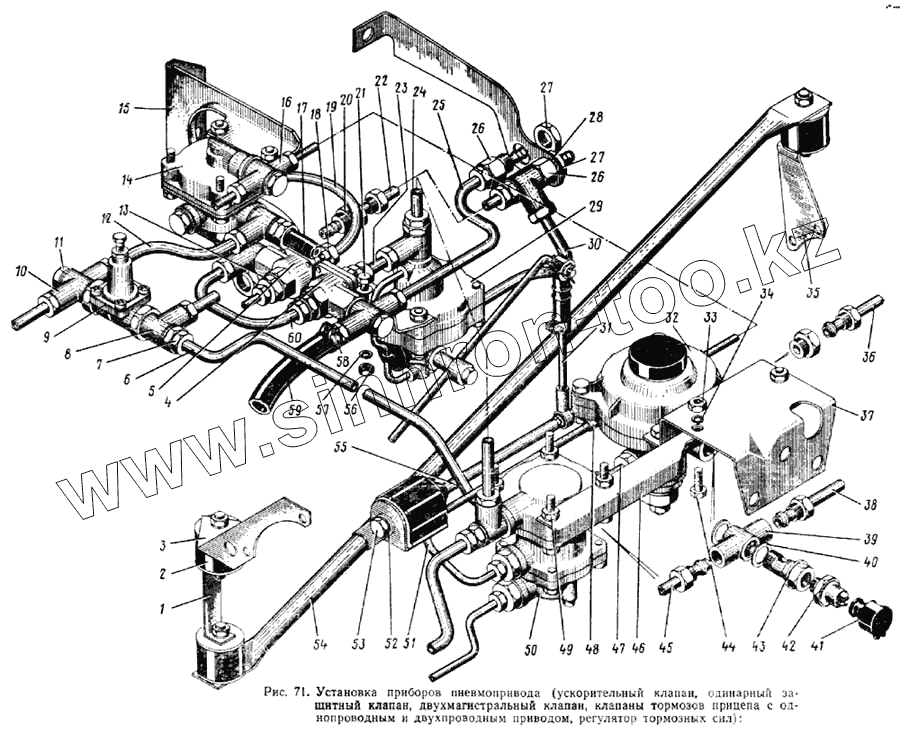 Каталог запасных частей к технике: ЗИЛ-133ГЯ. Установка приборов пневмопривода