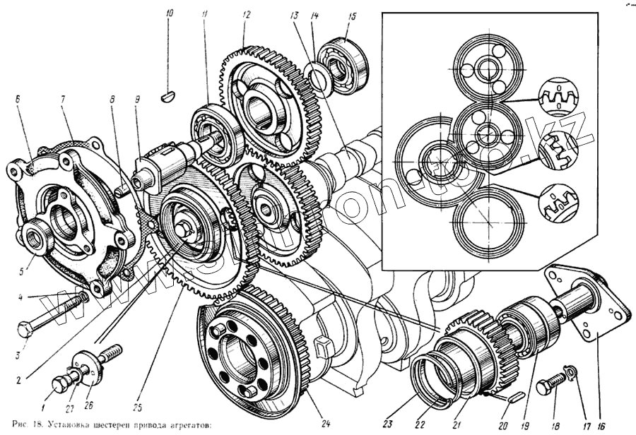 Каталог запасных частей к технике: ЗИЛ-133ГЯ. Установка шестерен привода агрегатов