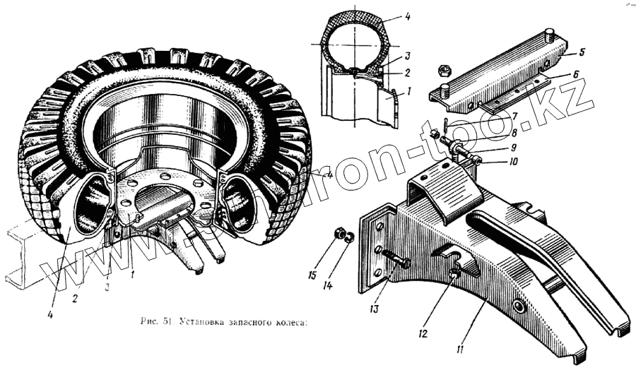 Каталог запасных частей к технике: ЗИЛ-133ГЯ. Установка запасного колеса